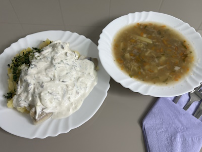Śledź 100 g (alergen: ryba) w śmietanie 150 g (alergen: mleko)