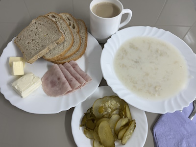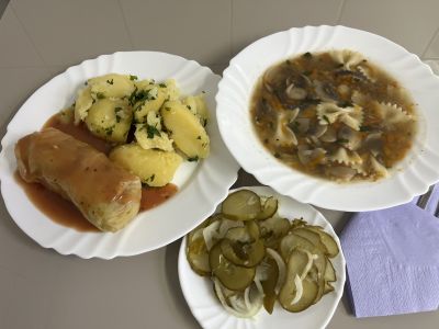 Sałatka z ogórków kiszonych 90 gZupa śliwkowa z makaronem 300 ml (alergeny: mleko, gluten,