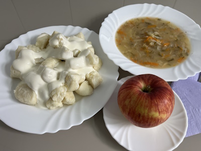 Jabłko 150 gZupa ziemniaczana 300 ml (alergeny: mleko, gluten, seler,