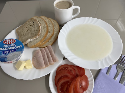 KolacjaZupa mleczna z zacierką 300 ml (alergeny: mleko, gluten)